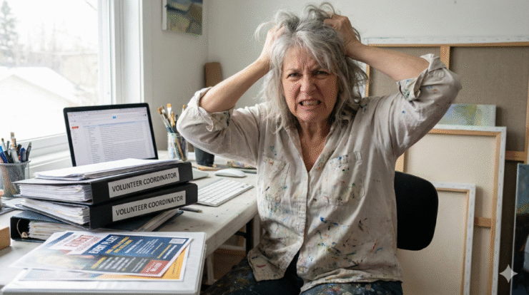 Have you ever found yourself so deep in volunteer organizing duties that your own artwork suffered? How did you recognize the imbalance, and what steps did you take to reclaim your time without feeling guilty?